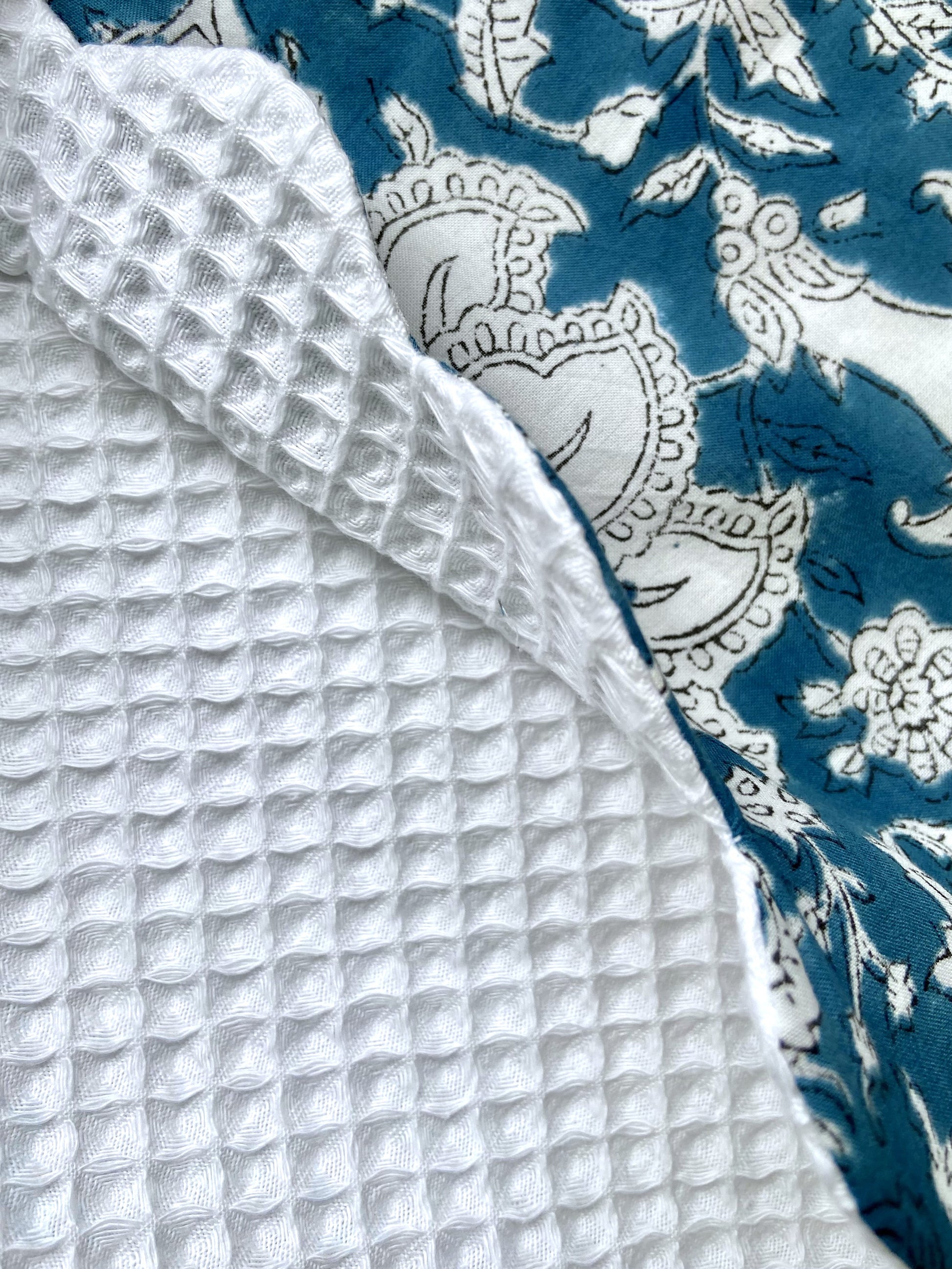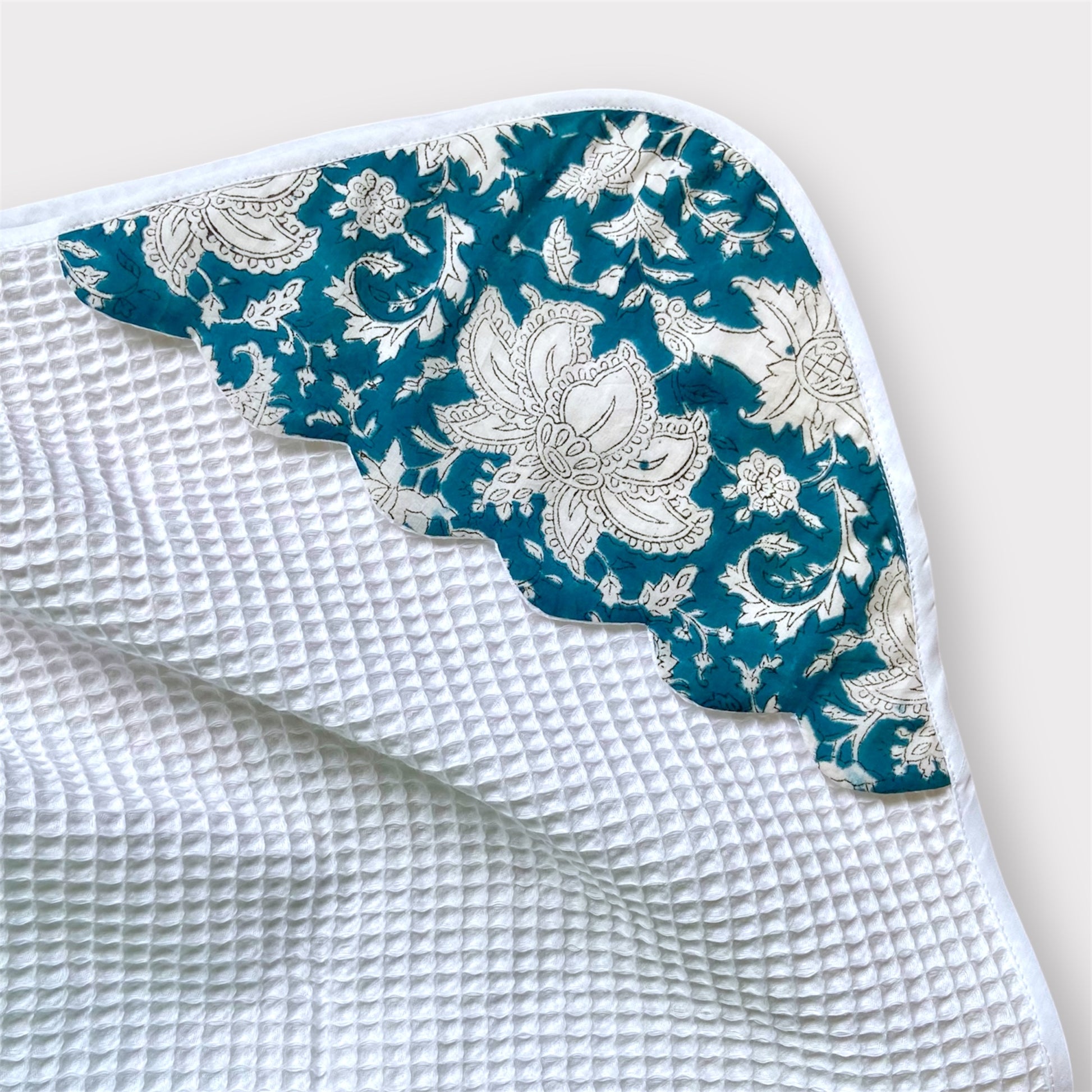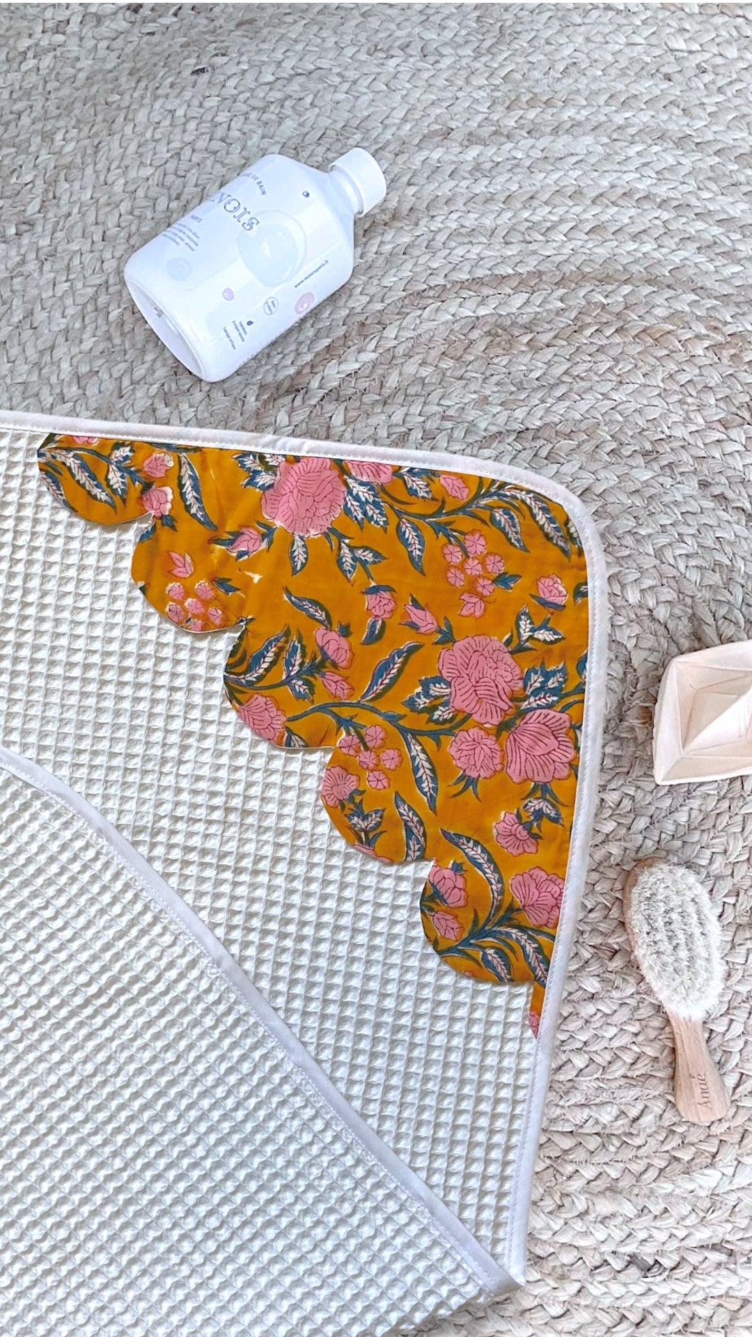 Offrez aux instants de détente avec votre enfant, une touche de douceur avec cette jolie sortie de bain en coton nid d’abeille, sublimée par un tissu indien coloré aux motifs traditionnels. À la fois légère, absorbante et élégante, elle allie confort et originalité pour accompagner vos rituels bien-être, à la maison comme à la plage.